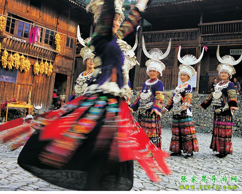 苗族在歷史長河中創(chuàng)造了珍貴的文學藝術。苗族民間文學分為民間歌謠、民間故事和諺語三大集成。民間歌謠分為史詩、古歌、苦歌、敘事歌、生產(chǎn)歌、風俗歌、起義歌、情歌、兒歌等,能唱的韻文作品有《遷徙歌》、《勞動歌》、《開親歌》、《盤龍歌》、《盼紅軍》、《送兒當紅軍》、《苗家想念紅軍》、《初戀歌》、《定姻緣歌》等。民間故事有《雷公和高比的故事》、《崇山的傳說》、《蘆笙是怎樣吹起來的》、《謊江山》、《石姓不吃肉》、《龍家姐妹》、《紅軍樹》等。苗族民間藝術分為音樂、舞蹈、戲劇和工藝四類。音樂又分為苗歌和樂器兩類。苗歌按其腔調分為高腔、平腔兩類;樂器按演奏方式分為打擊樂器和吹奏樂器兩類。打擊樂器有銅鼓、銅鑼、銅鈸和鈴等。吹奏樂器有嗩吶、蘆笙、長號、筒簫等。苗族舞蹈有木鼓舞、蘆笙舞、跳香舞和接龍舞。苗族戲劇有儺堂戲、花鼓戲和苗戲等。苗族工藝有刺繡、挑花、織花帶、織提籃、織背簍、蠟染和銀飾等。其中,苗繡、花帶、苗族織錦、苗族銀飾、蠟染服飾和飯簍等工藝品已經(jīng)成為張家界風景區(qū)的旅游紀念品,為海內外無數(shù)游客喜愛。