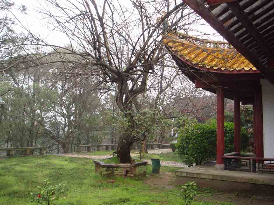 酒香亭在君山中部的酒香山峰上,掩映在翠竹藤蔓之中。入亭小憩,不僅鳥語花香,更有一股隱隱酒香撲鼻。原來此山中生長著一種開黃色小花的青藤,花香帶著酒味,這種藤叫酒泉藤,傳說用藤上小花釀的酒,喝了長生不老,可以成仙,這事傳到漢武帝耳里,他便派使臣欒巴率領(lǐng)男女?dāng)?shù)十人趕來君山,取回了仙酒。酒到京城,卻被當(dāng)時能言善辯的臣子?xùn)|方朔偷飲了。漢武帝得知,“龍顏”大怒,要將東方朔斬首。東方朔不慌不忙地奏道:“如果喝了此酒真會長生不老,可以成仙,皇上就殺我不死,如果臣被殺死了,此酒皇上喝了也不會長生不老。”武帝無言以對,便赦免了他。這事傳到了君山,人們便在酒香山修了酒香亭,以為紀(jì)念。如今的此亭,為一九八一年恢復(fù),占地近三十二平方米,高六米余,為四柱方形、磚石木混合結(jié)構(gòu),古香古色,富有詩意。