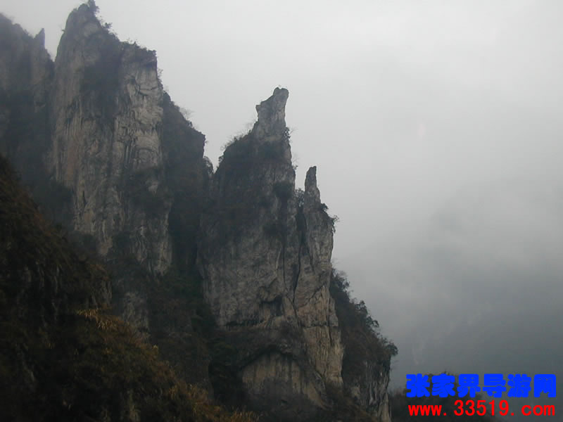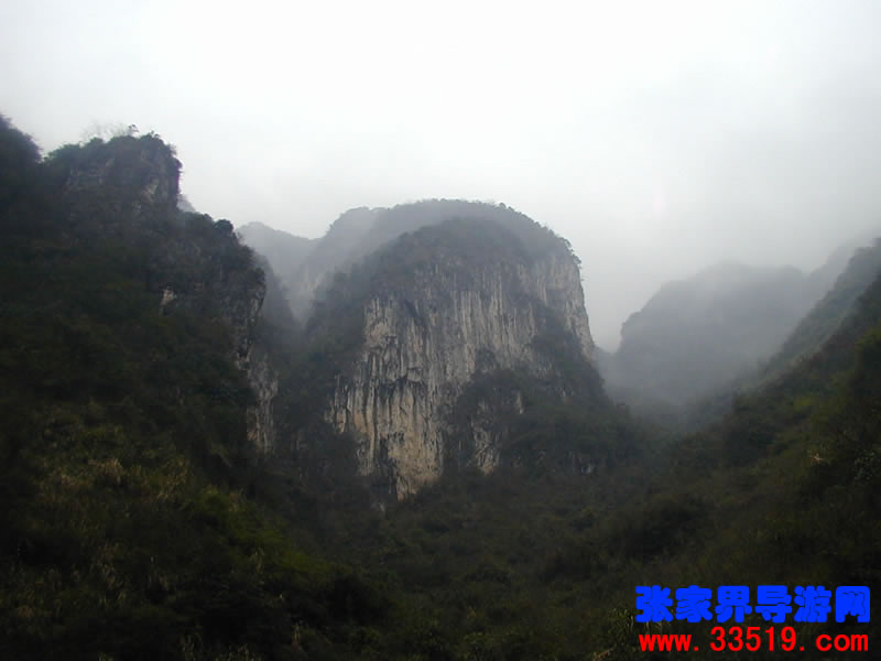 南天門——沿著河水一直往里走,在溪水最深處,可以仰望那隱藏在云霧里的南天門。它并不同于天門山天門。它獨立于眾山之中,就像真正的通天大門,當(dāng)你翻過了前面的天門,卻還要再通過這座南天門,方可真正羽化登仙。南天門旁邊的幾座山峰,也都生的奇形怪狀,倒也天然形成了一個個大大小小的自然景觀。宛如天兵天將般守衛(wèi)南天門的將軍巖,象征南天門仙家氣息的蠟燭峰等,散落在四周,構(gòu)成了一個整體的山體奇觀。