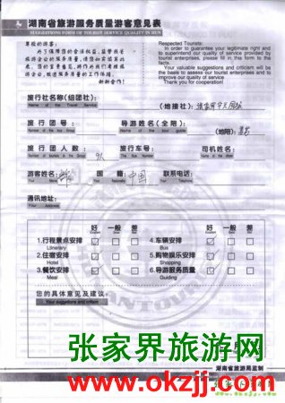 2010年7月2日許先生一行9位旅游質(zhì)量反饋