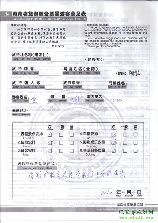 - 2011年10月26日張小姐一行18人旅游質(zhì)量反饋 [10482]