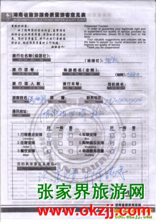 2010年3月14號(hào)吳先生一行張家界旅游質(zhì)量反饋