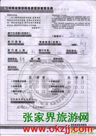 2010年4月4日李小姐一行8人張家界旅游質(zhì)量反饋
