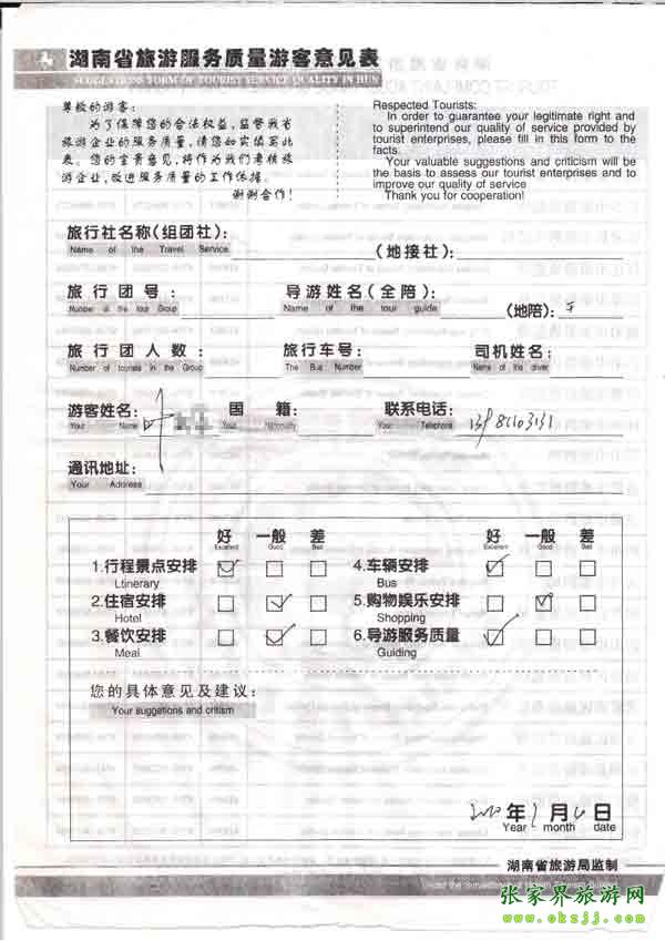 2010年7月4日葉先生旅游質(zhì)量反饋