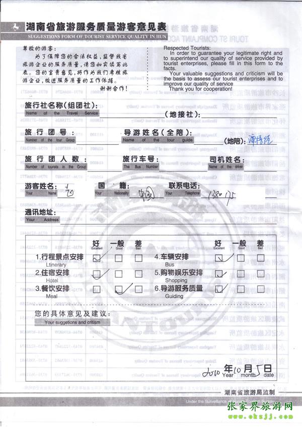 游客對旅行社及導游反饋意見單