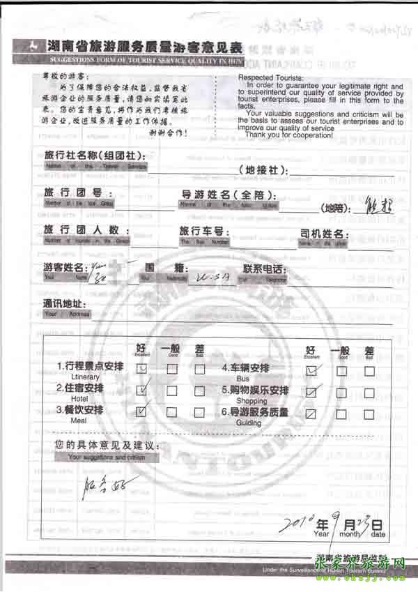 2010年9月23日美國孫小姐旅游質(zhì)量反饋:服務(wù)好