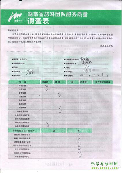 2011年7月6日郁小姐一行5人旅游質量反饋