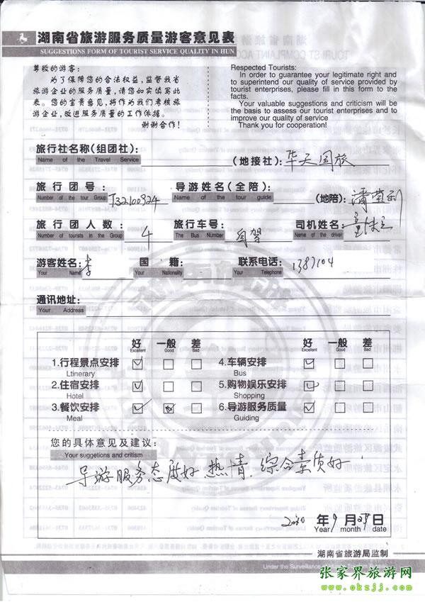 2010年9月24日 李先生一行 高度評(píng)價(jià)華天國(guó)旅導(dǎo)游小潘