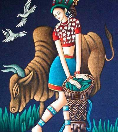 ■土家粘貼畫 介紹: 系采用樹根、樹枝、樹葉、樹皮以及砂石、草苔、布片等作為原料粘貼成人物、風(fēng)景、動(dòng)物、花草和各種不同內(nèi)容的畫幅。