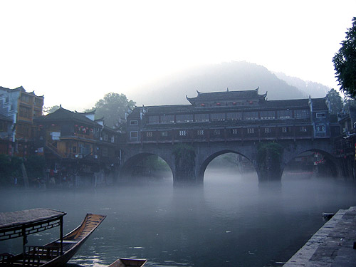 這座曾被新西蘭作家路易艾黎稱作中國(guó)最美麗的小城之一的“鳳凰古城”建于清康熙時(shí),這顆“湘西明珠”是名副其實(shí)的“小”,小到城內(nèi)僅有一條像樣的東西大街,可它卻是一條綠色長(zhǎng)廊。