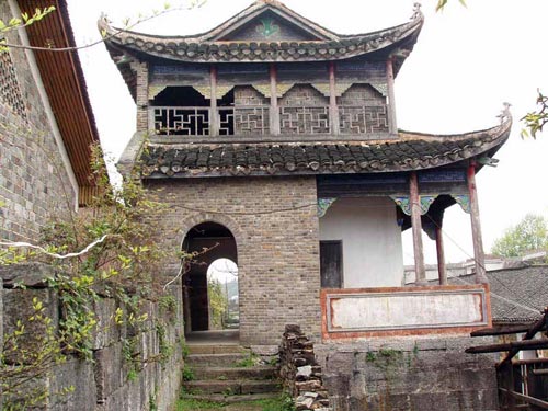 這是一處具有濃厚民族特色的建筑群,有大門、正殿、戲臺(tái)20多間屋宇,并有天井、天池、回廊,還設(shè)有“五福”、“六順”兩門。