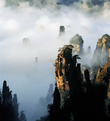 反正第一天和第二天都可以調(diào)換著走,如果自己游,可以第一天看完金鞭溪之后,直接去水繞四門乘百龍電梯去袁家界,也可以爬山到袁家界,看完袁家界之后就住在山上,不過山上的條件沒有山下的好,然后第二天看天子山、十里畫廊,下午有時間的話再看看黃龍洞寶峰湖