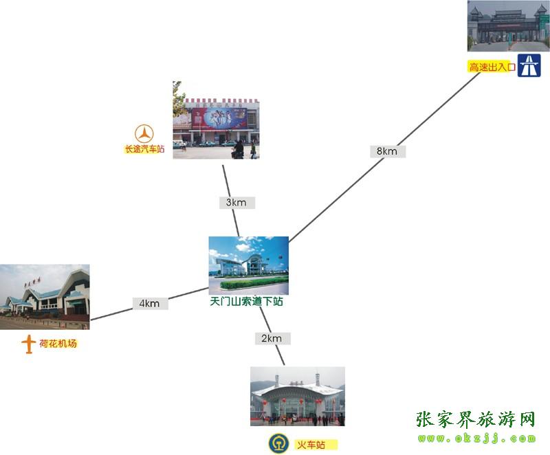 ![]() 天門山索道下站距荷花機(jī)場3公里,距火車站0.5公里,距長張高速公路出口也僅8公里之遙。景區(qū)周圍另有張羅、張清、張桑等公路通往省內(nèi)各個(gè)方向。進(jìn)城公路和市內(nèi)主要道路均安裝了交通指引標(biāo)示,寬暢的道路和清晰的指引路牌使得游客抵達(dá)天門山特別方便順暢。