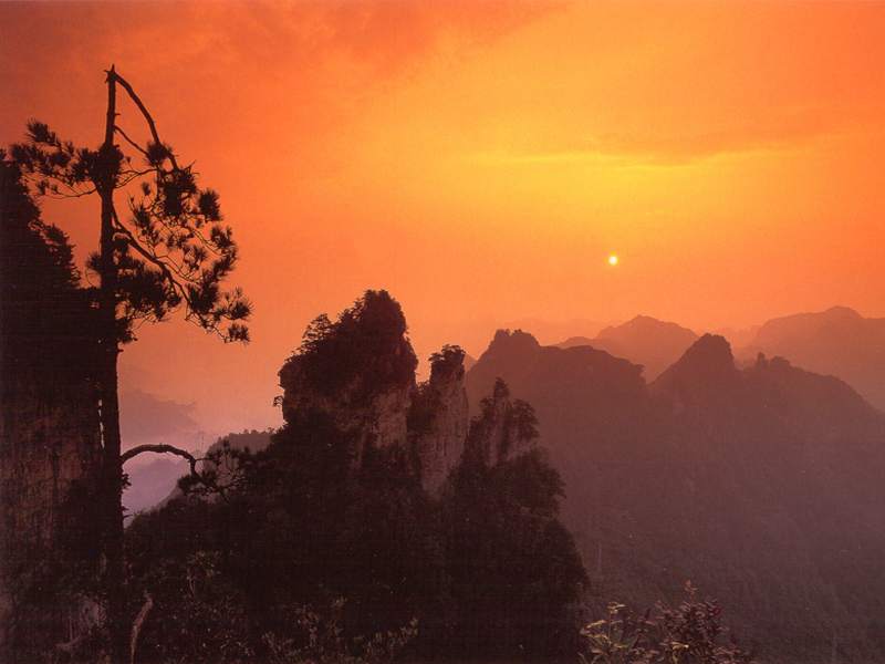 第二天   游覽世界峰林奇觀森林公園—天子山景區(qū):西海、天臺、仙女獻(xiàn)花、御筆峰、賀龍公園、臥龍嶺、十里畫廊,中途參觀百丈峽,住武陵源索溪峪